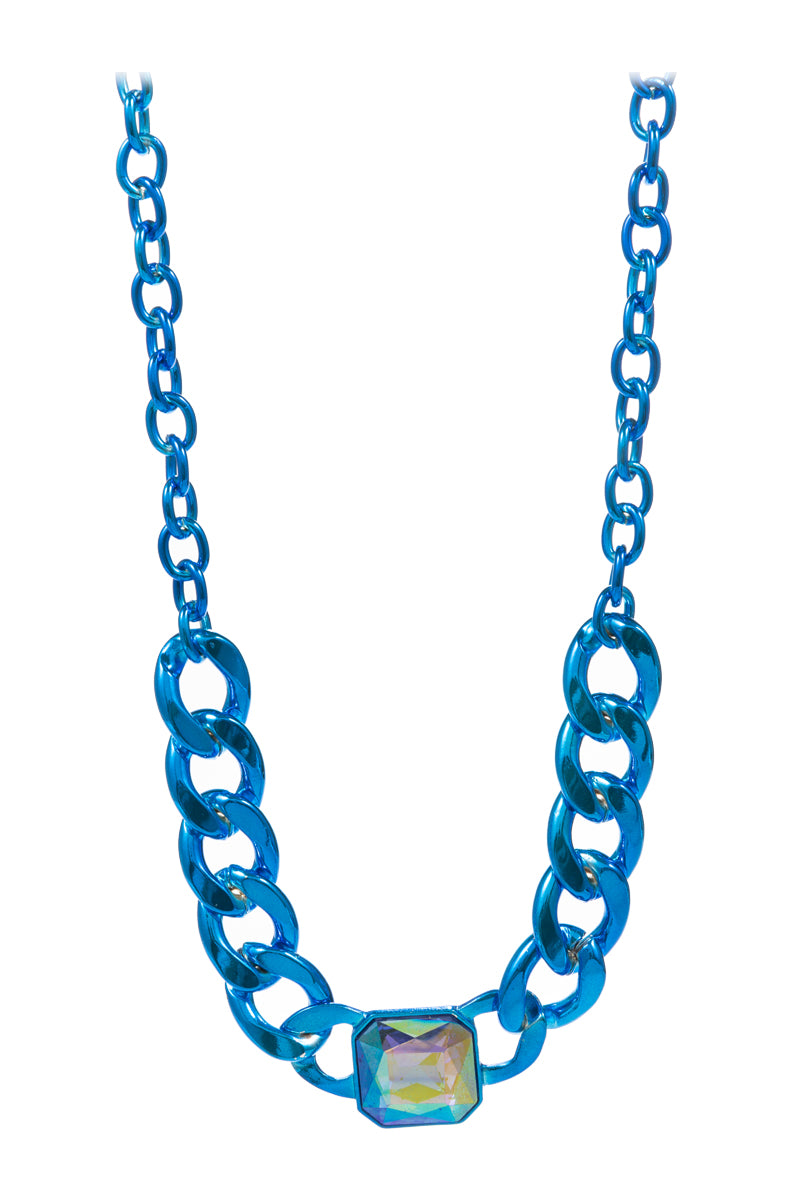 Expertly crafted with 18-inch square-shaped multicolored glass, this short necklace is both stylish and versatile.