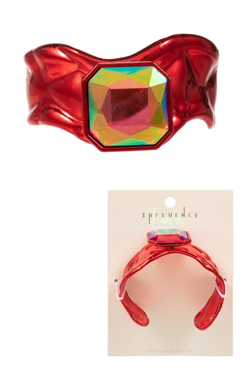 Square Multicolor Glass Rhine Stone Cuff Bracelet