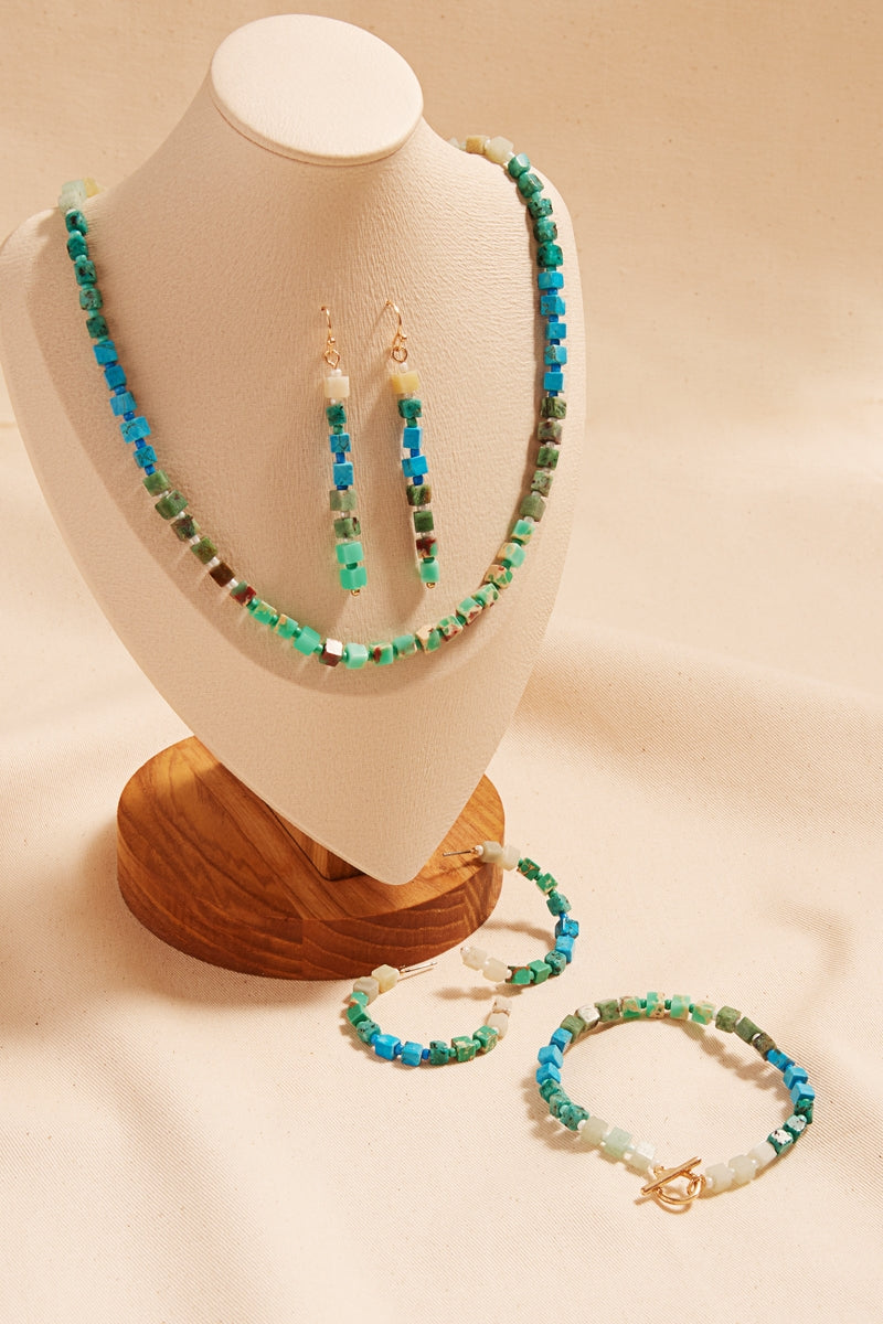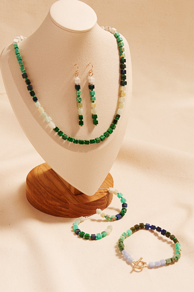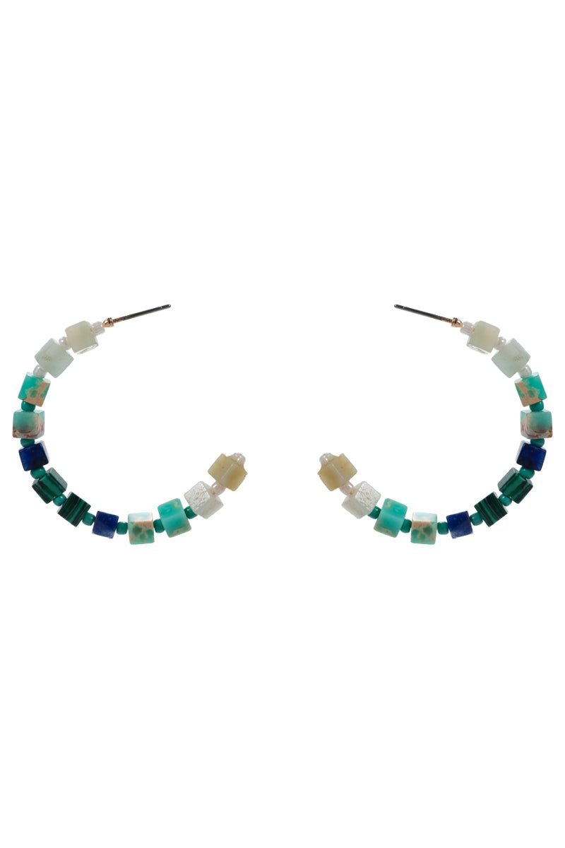 Square Semi Precious Stone Bead Mix Hoop Earrings