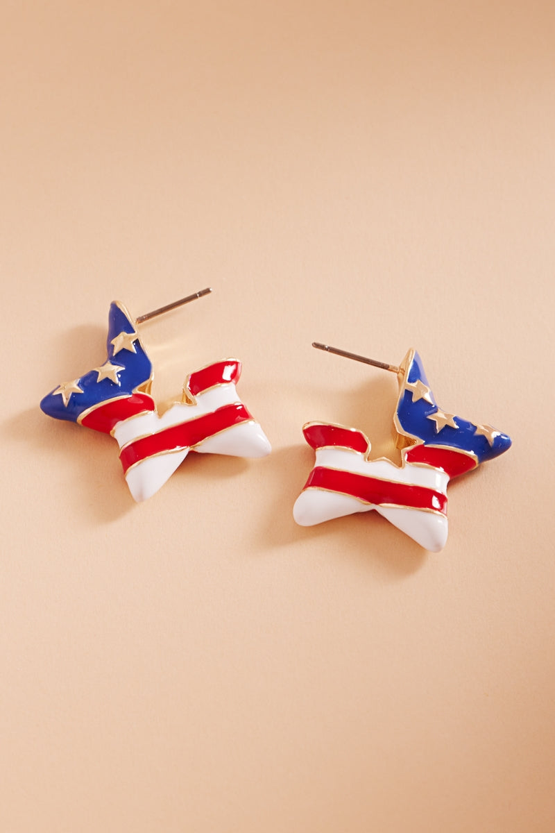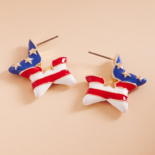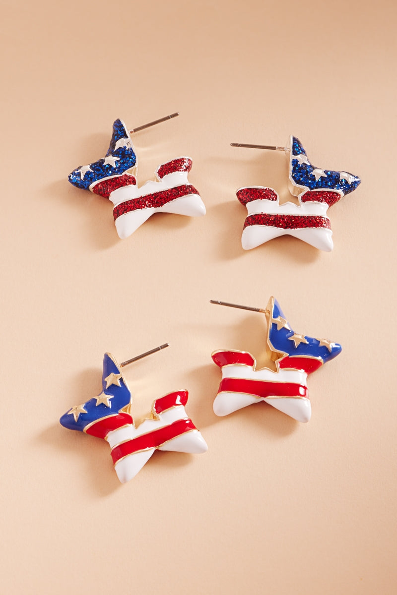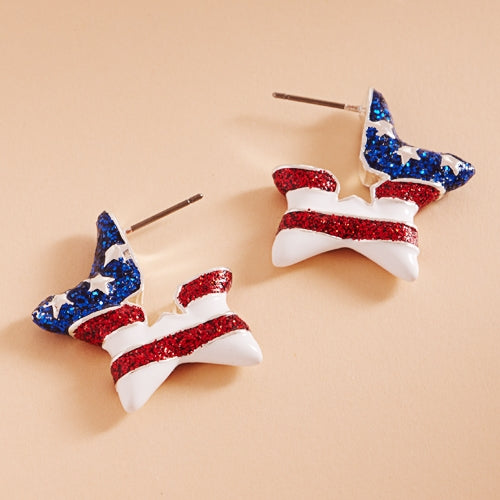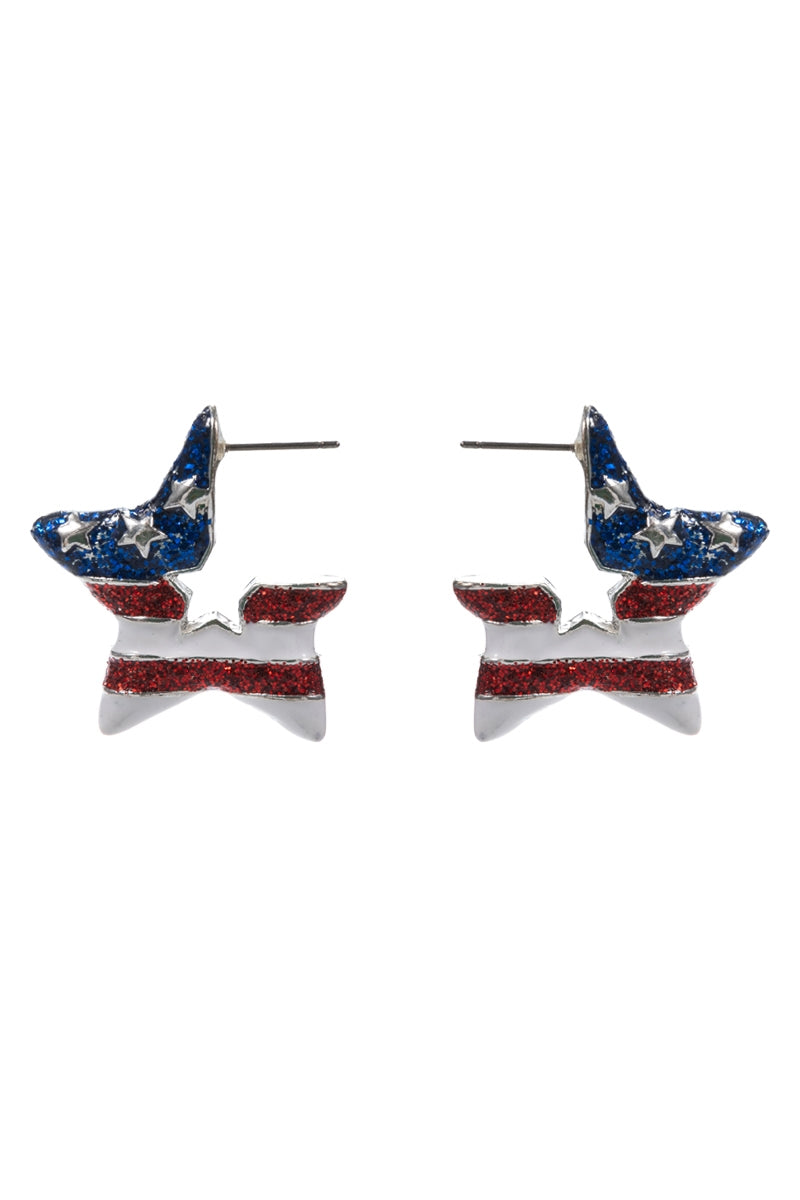 These 1 inch star shaped enamel hoop earrings feature a classic American flag pattern. Made with hypoallergenic titanium posts, they are comfortable for all-day wear. Perfect for showing off your patriotism in style.