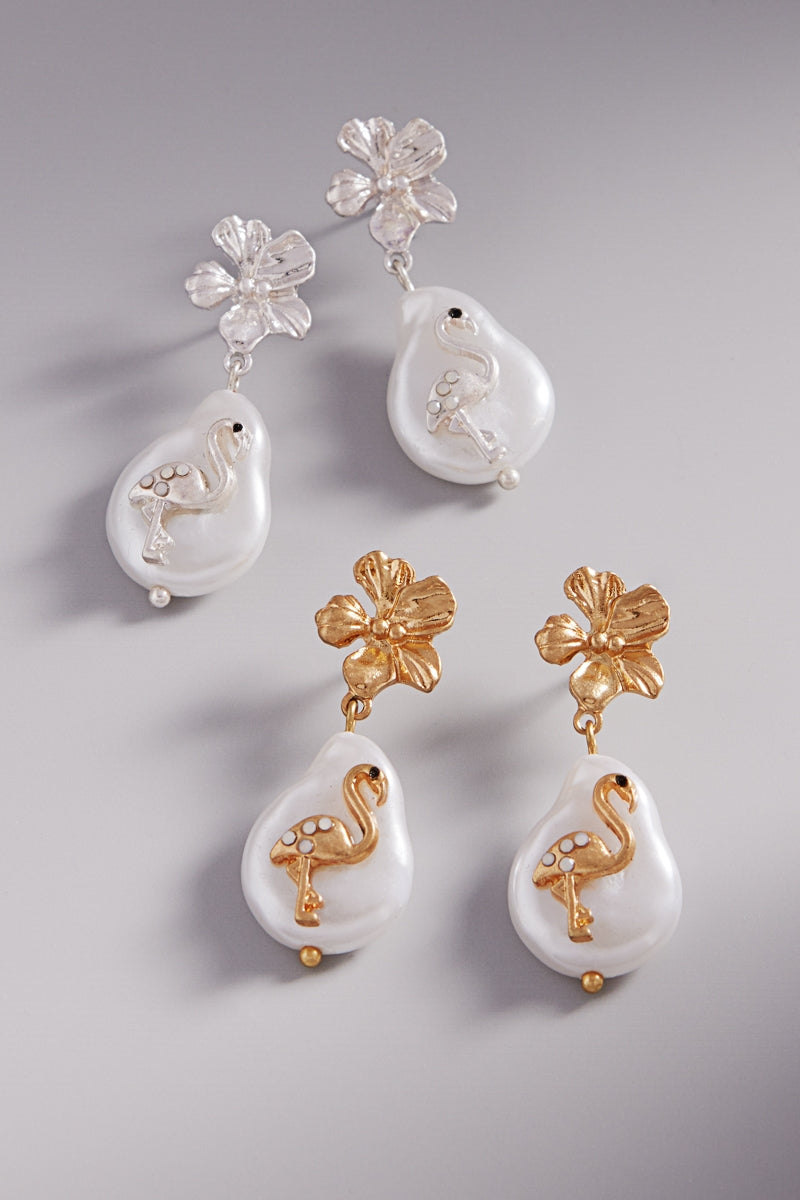 Elevate your jewelry game with these stunning 1.5 inch Flamingo Shaped Pearl Earrings. Made with hypoallergenic titanium post, these earrings are both stylish and safe for sensitive ears. Stand out in a crowd with the unique flamingo design and add a touch of elegance with the pearl accents. Perfect for any occasion.