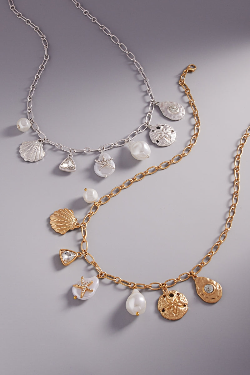 Summer Sealife Vintage Pearl Charm Short Necklace