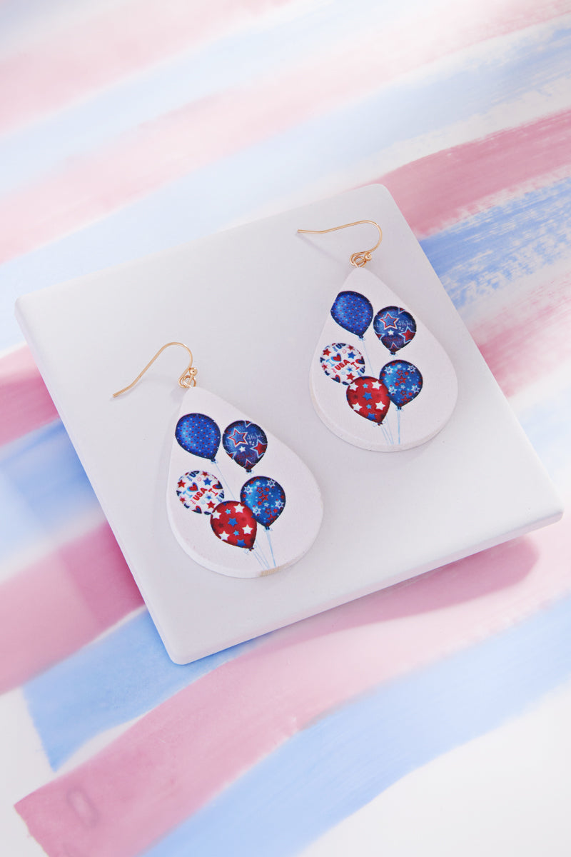 Tear Drop Shaped With Balloons Wood Hook Earrings