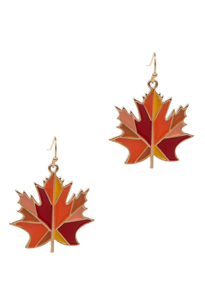 Thanksgiving Colored Maple Leaf Hook Earrings