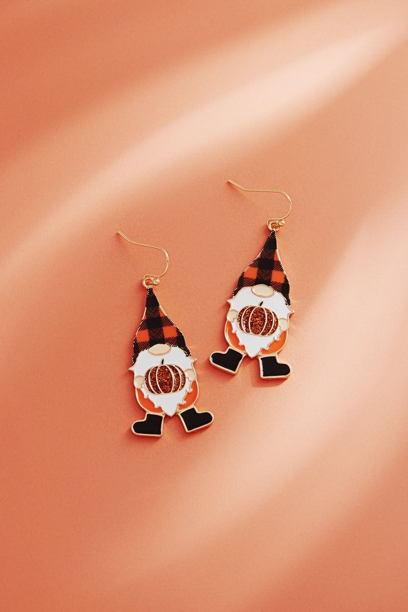 Thanksgiving Gnome W Pumpkin Brass Hook Earrings
