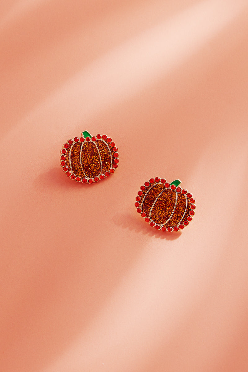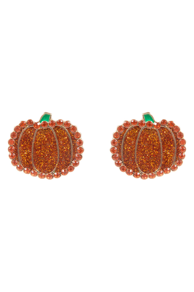 Thanksgiving Pumpkin Rhinestone Post Earrings