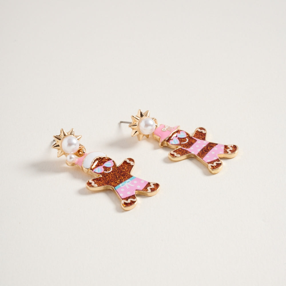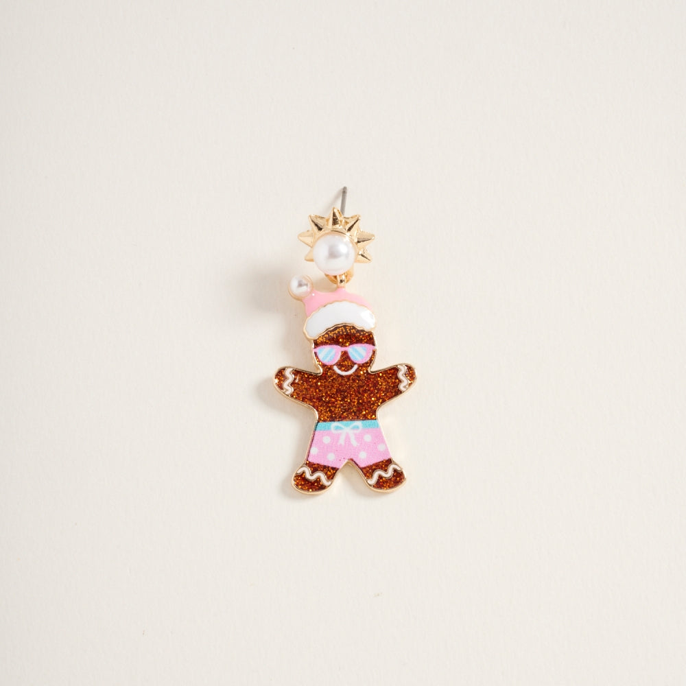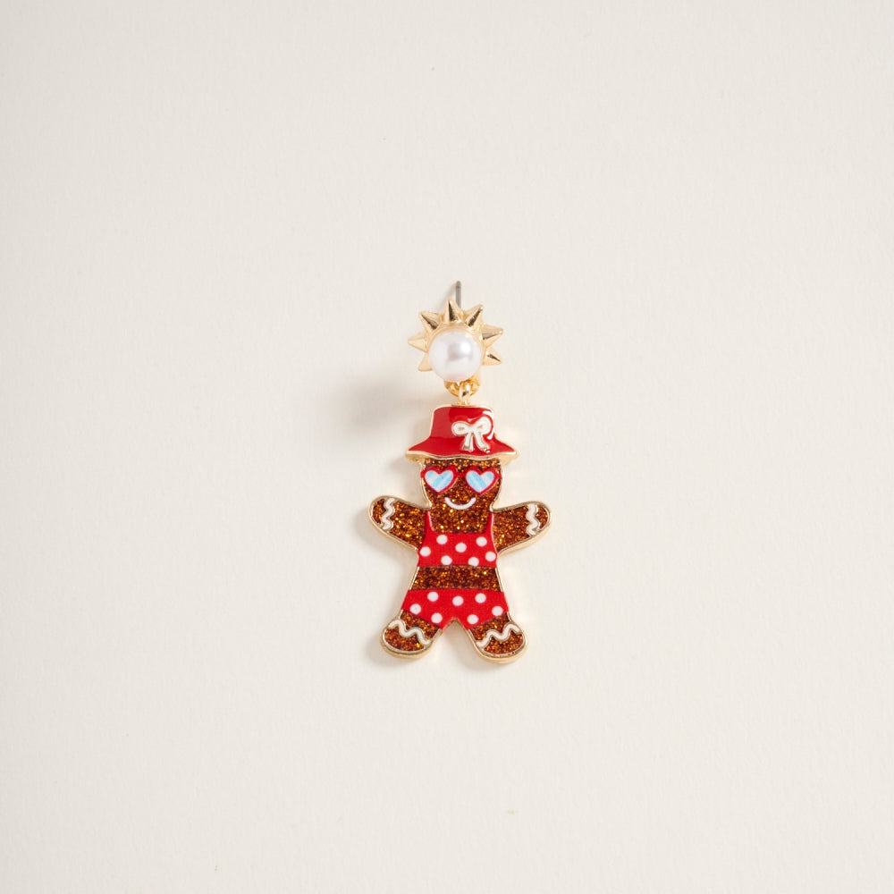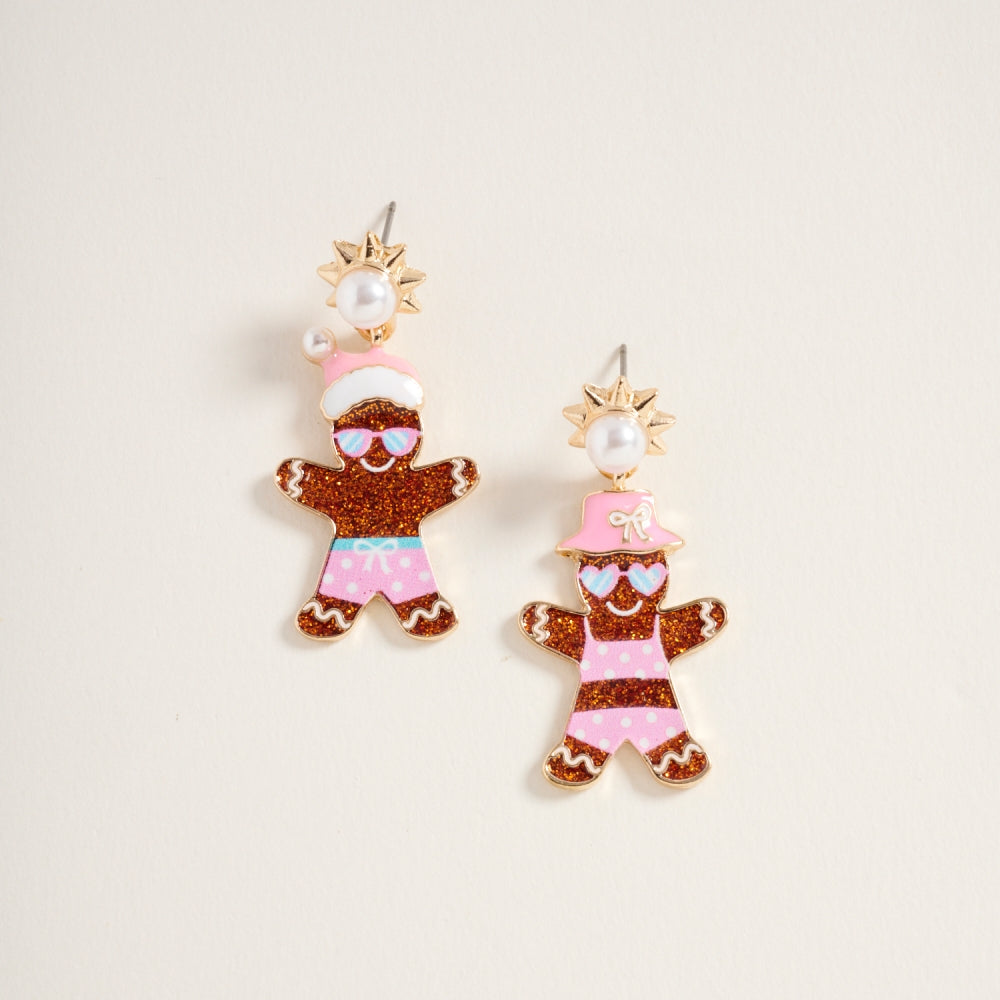 Vacation Christmas Gingerbread Couple Post Earring