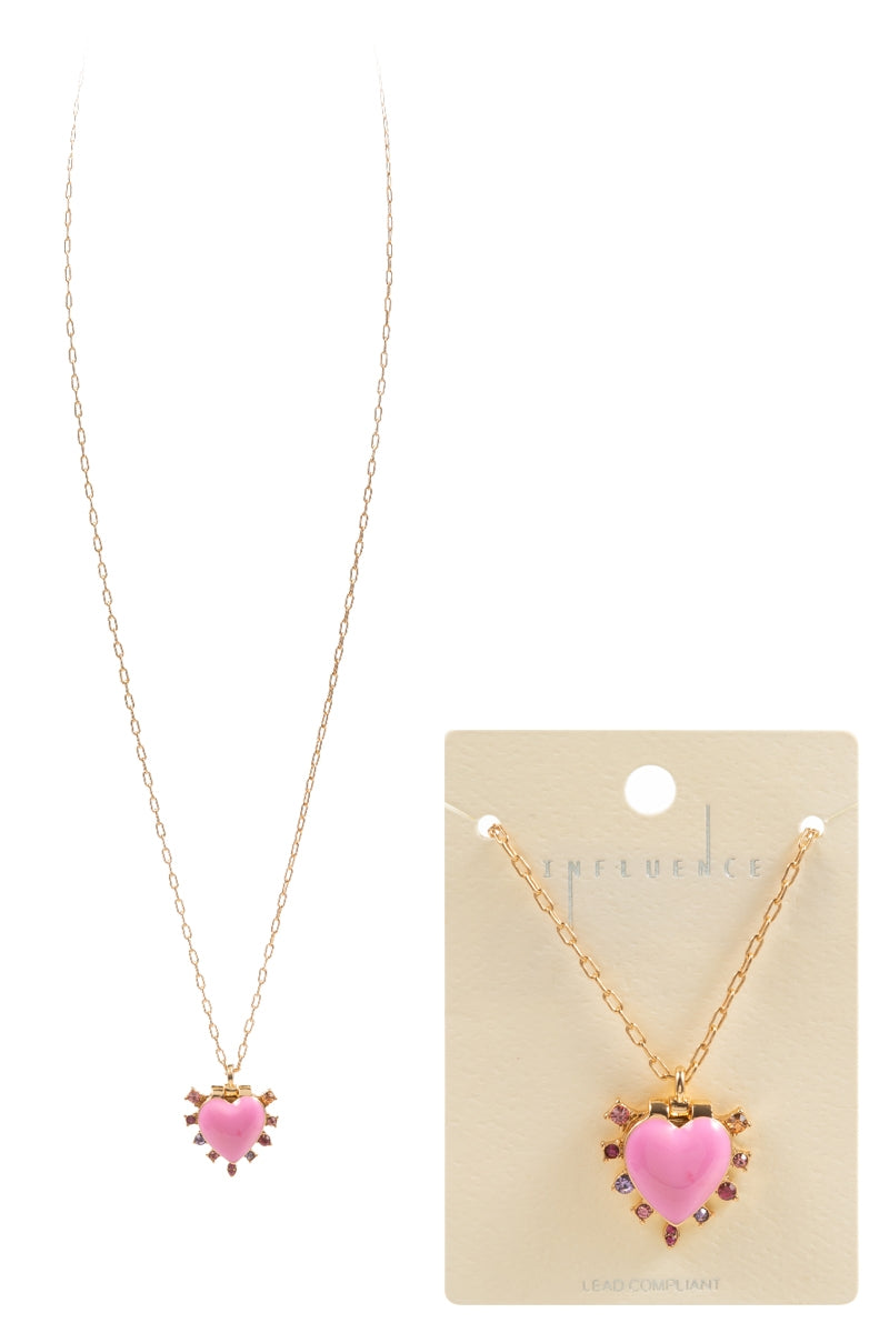 This 18-inch heart-shaped enamel necklace features colorful stones, adding a touch of glamour to any outfit. Perfect for those who want to make a statement, this short necklace is a must-have accessory for any jewelry collection. Elevate your style with this eye-catching piece.