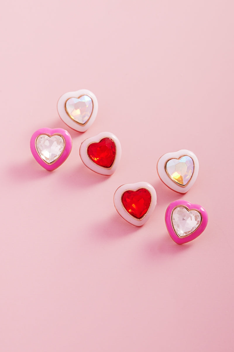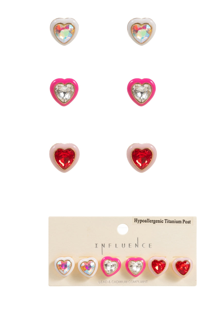 Valentine Heart Enamel W Stones 3Set Post Earrings