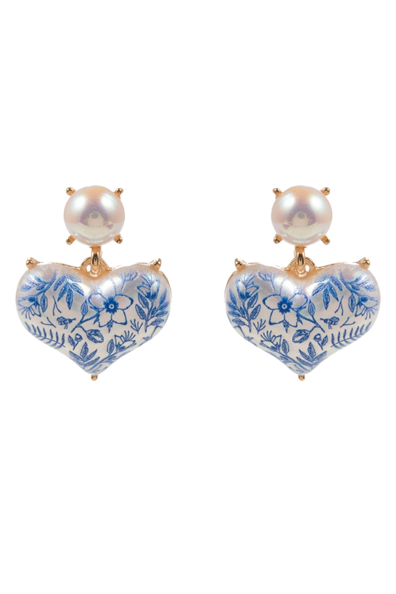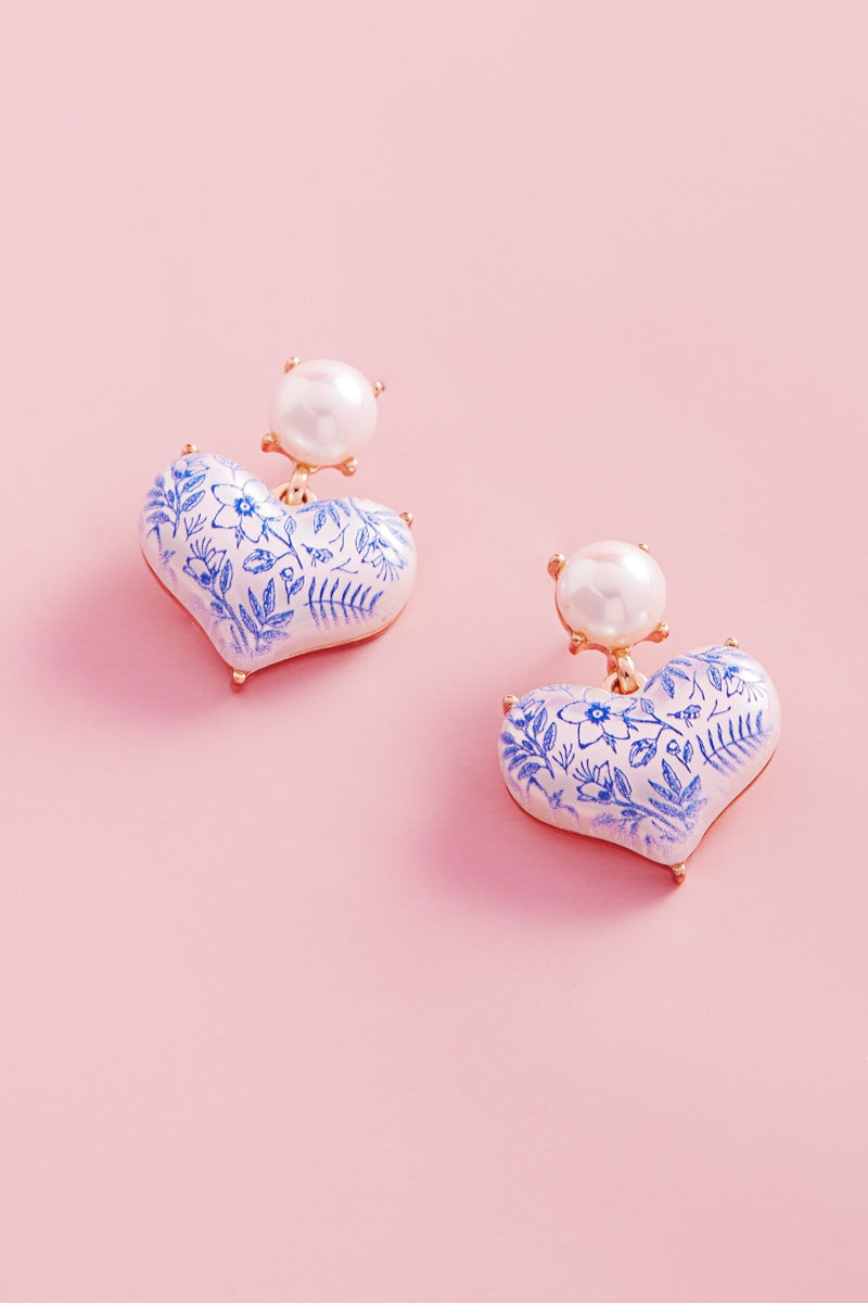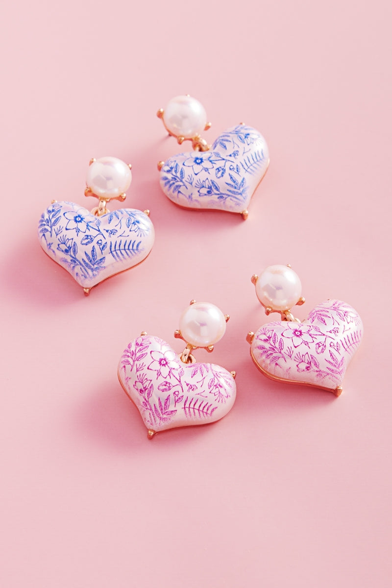 Valentine Heart Pearl Vintage Flower Post Earrings