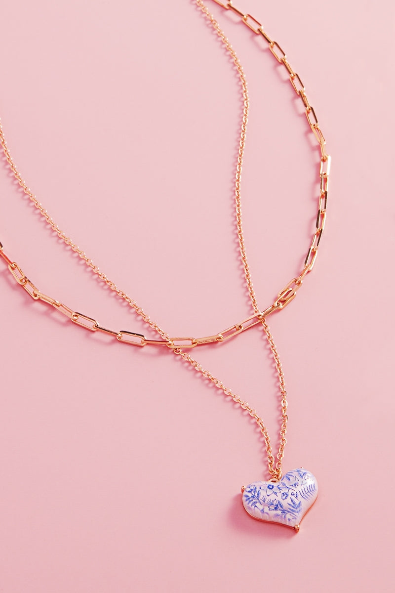 Crafted with a delicate 16-18 inch heart-shaped pearl, our vintage flower print necklace adds a touch of elegance to any outfit. The 2 layered design offers a unique and versatile look, perfect for any occasion. Enhance your style with this beautiful piece.
