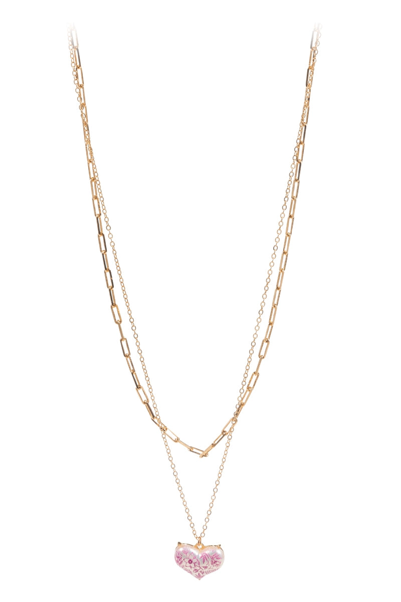 Valentine Heart Pearl W Flower 2 Layered Necklace