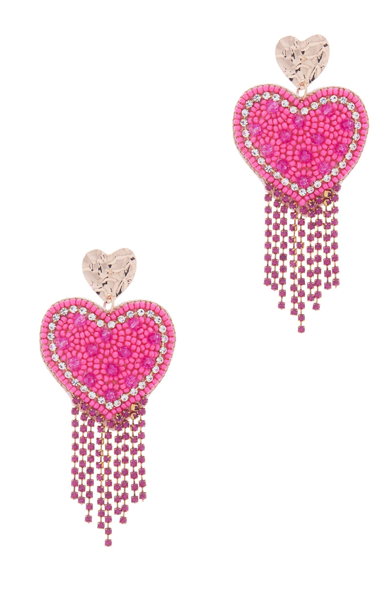 Valentine Heart Rhine Stone Tassel Post Earrings