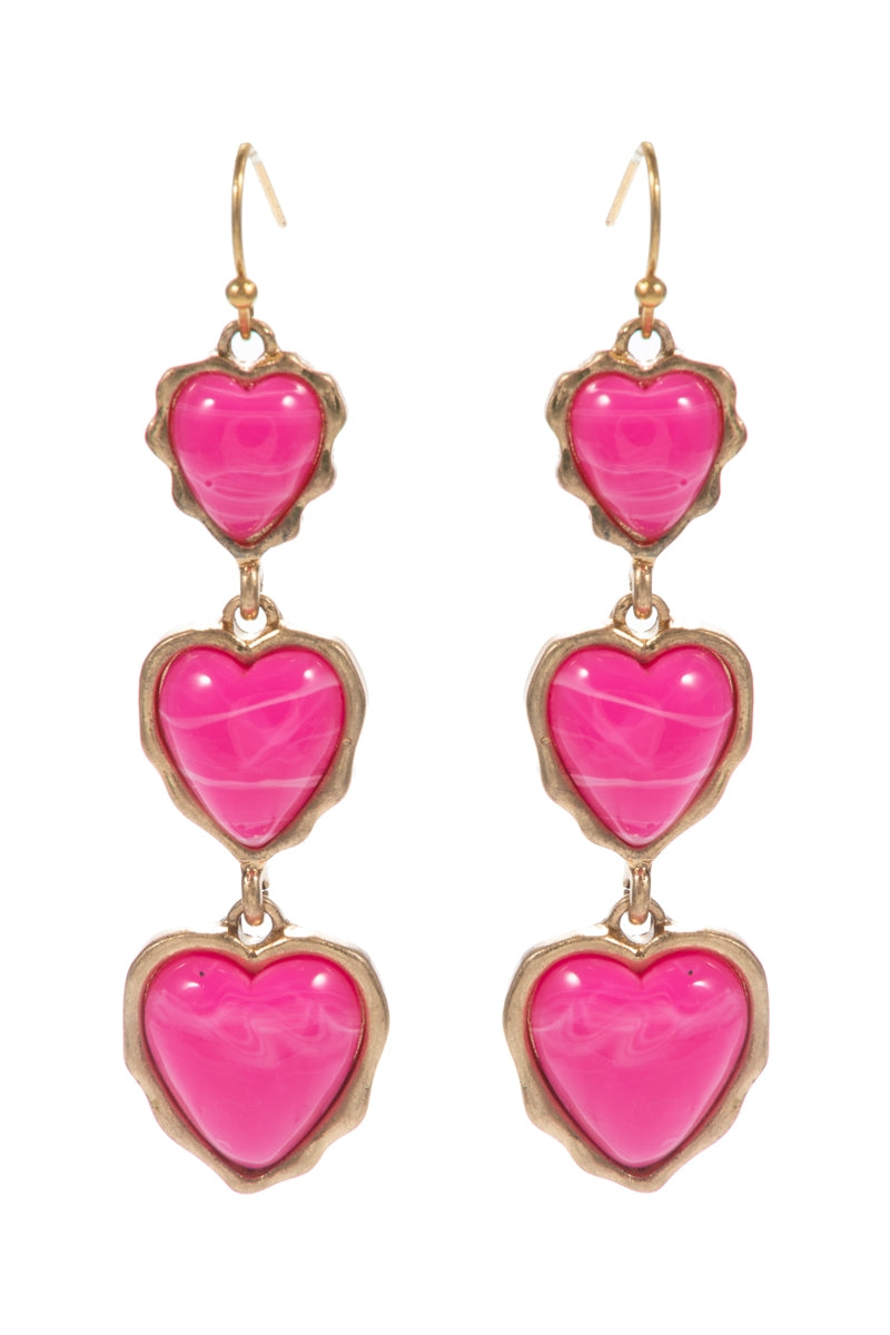 Expertly designed with a vintage-inspired heart shape, these 2.5 inch earrings feature a unique framed metal design and a faux stone brass hook. Elevate your style with a touch of elegance and sophistication.