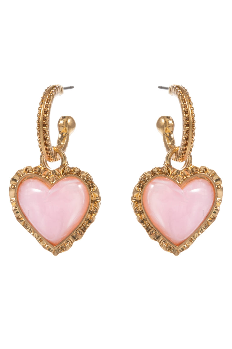Expertly crafted with a vintage metal frame and faux stone accents, these heart-shaped earrings are both elegant and durable. The titanium post ensures a secure fit, making them perfect for everyday wear. Add a touch of sophistication to any outfit with these statement hoop earrings.