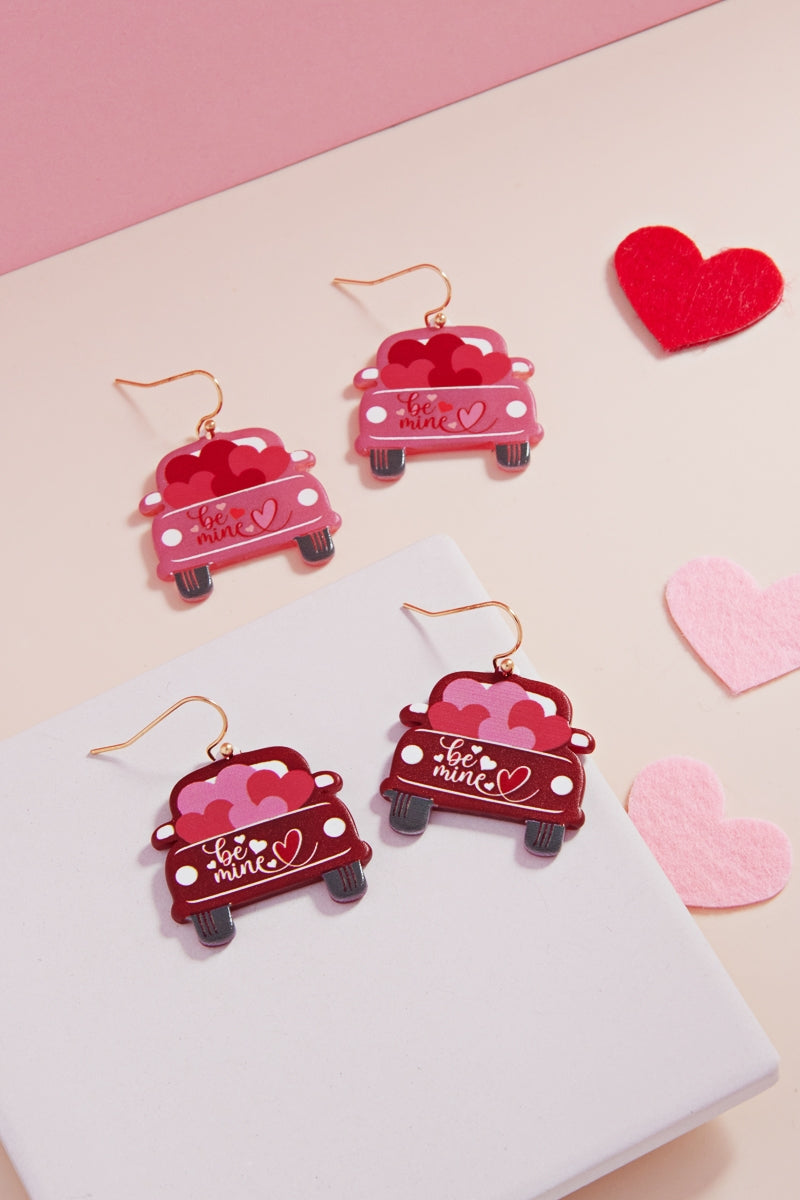 Valentines Day Car W Be Mine Printer Hook Earrings
