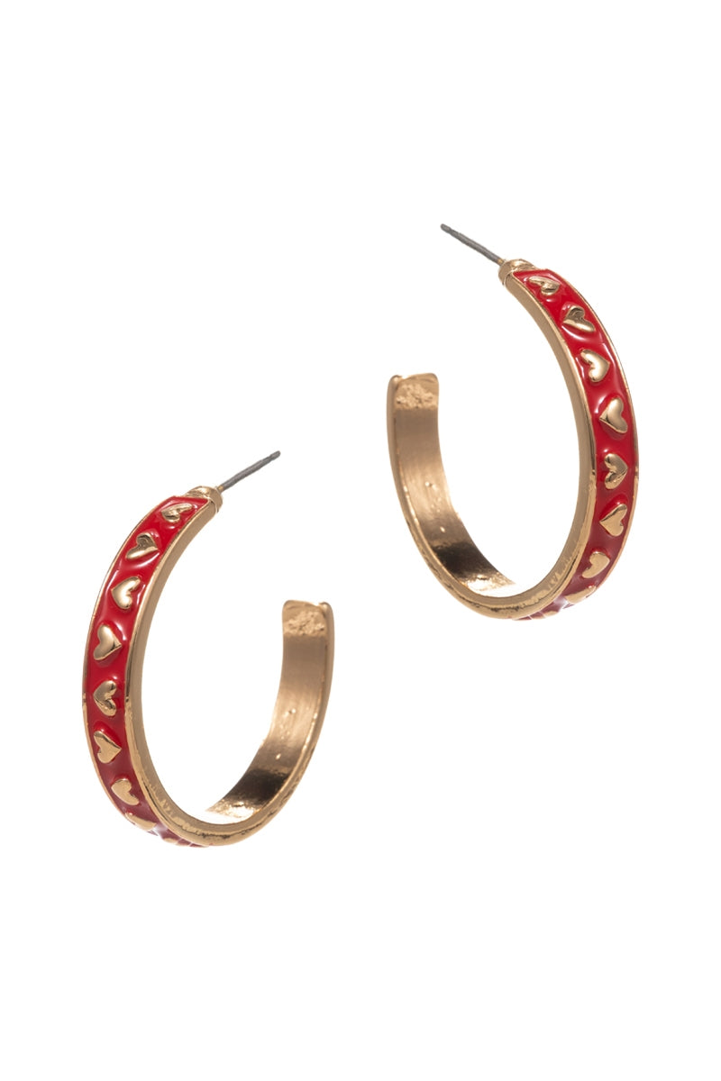 Valentines Day Heart Metal W Enamel Hoop Earrings