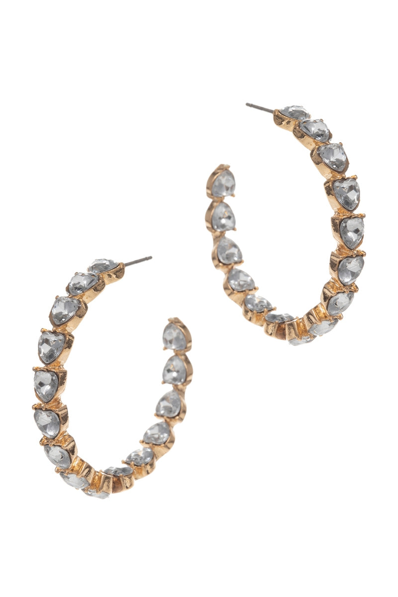 Discover the elegant beauty of our 1.5 inch heart shaped rhinestone paved hoop earrings. Perfect for adding a touch of sparkle to any outfit, these earrings are a must-have for any jewelry collection. Crafted with precision and attention to detail, they are sure to make a statement wherever you go.