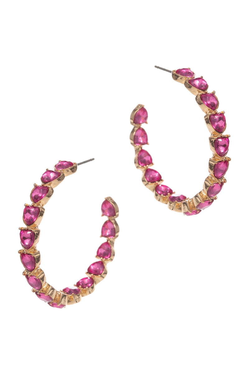 Valentines Day Heart Rhinestone Pave Hoop Earrings