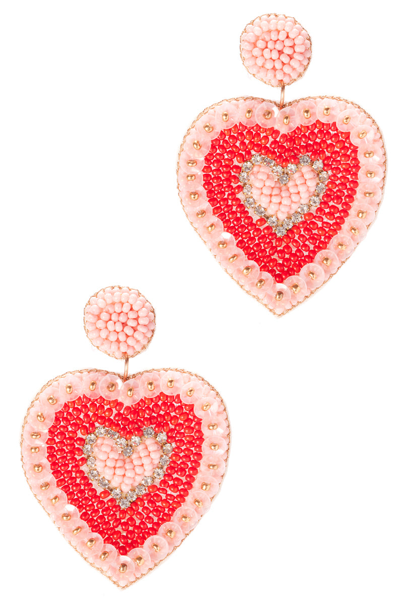 Valentines Day Heart Shaped Beaded Post Earrings