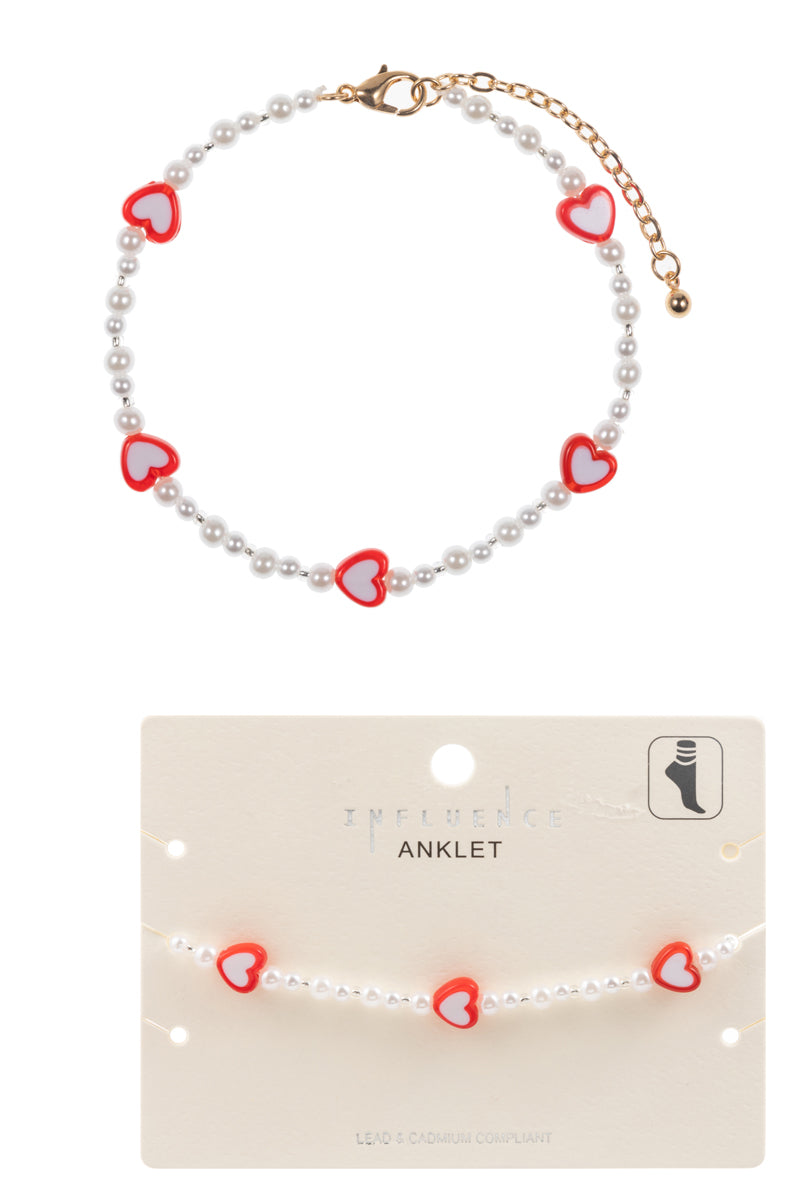 Valentines Day Heart Shaped Pearl Stretch Bracelet