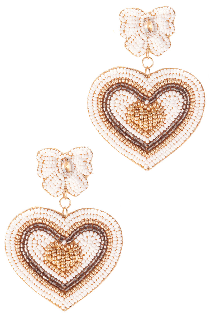Valentines Day Heart W Ribbon Beaded Post Earrings