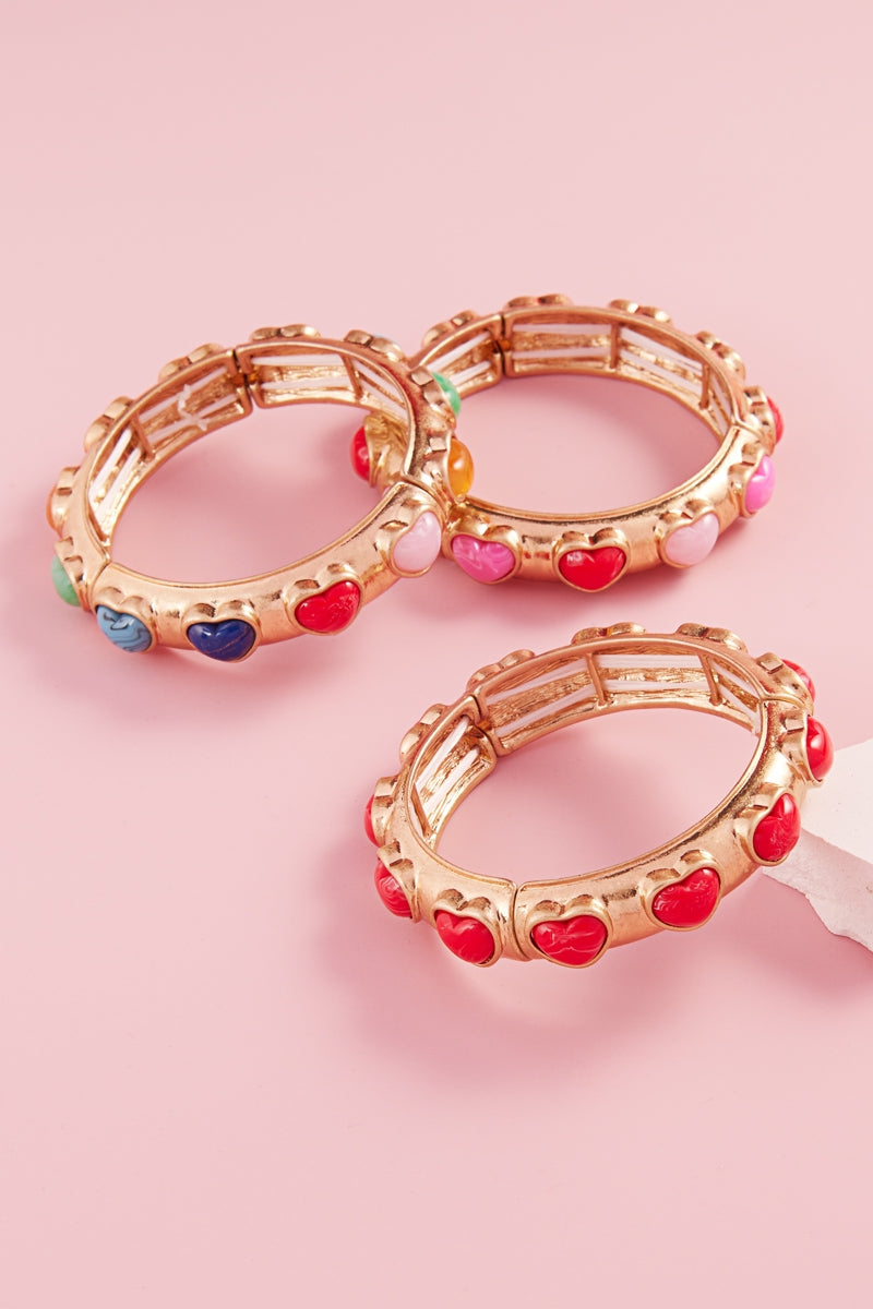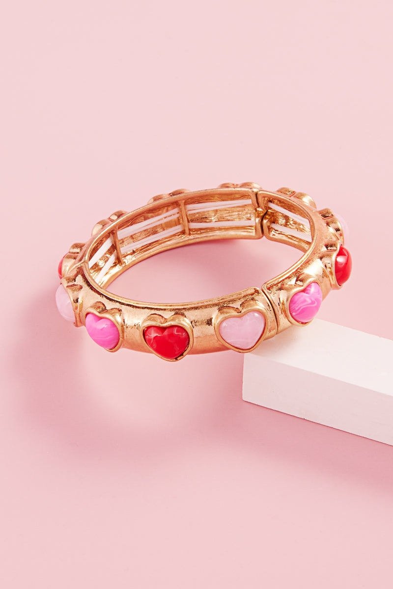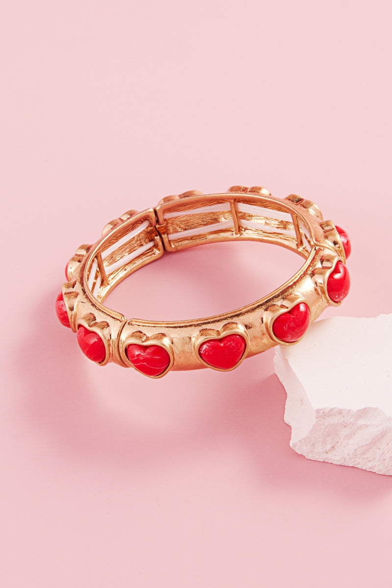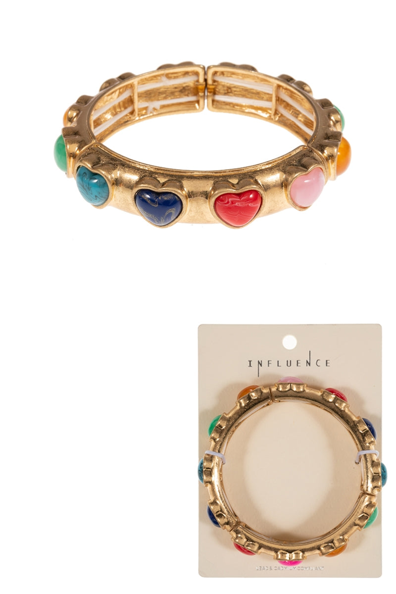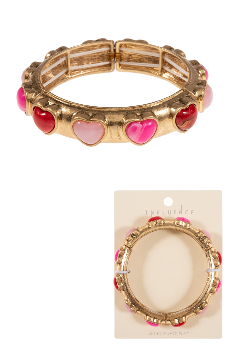 Valentines Heart Metal Faux Stone Stretch Bracelet