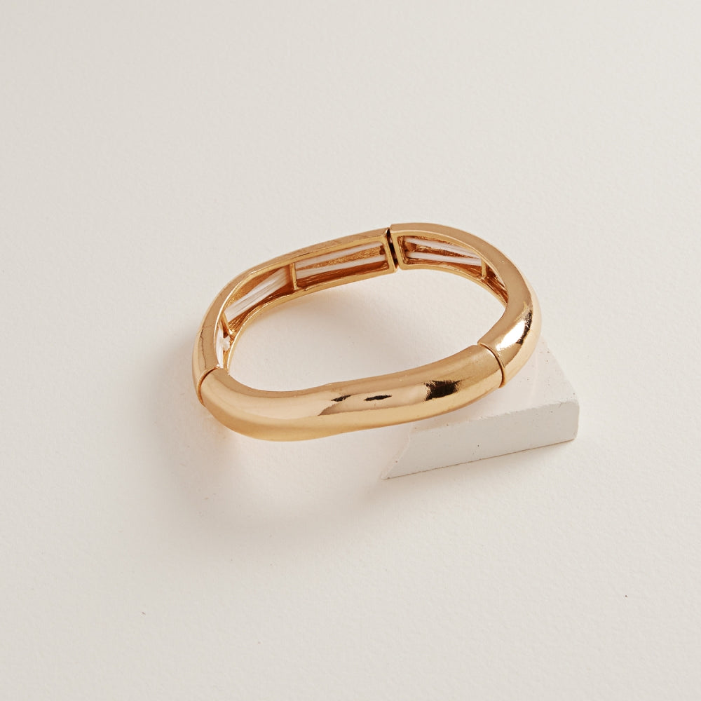 Designed with a soft wavy shape and vintage charm, this stretch bangle bracelet offers a sculptural touch to your everyday style. Lightweight and flexible, it's an elegant piece you'll reach for again and again.