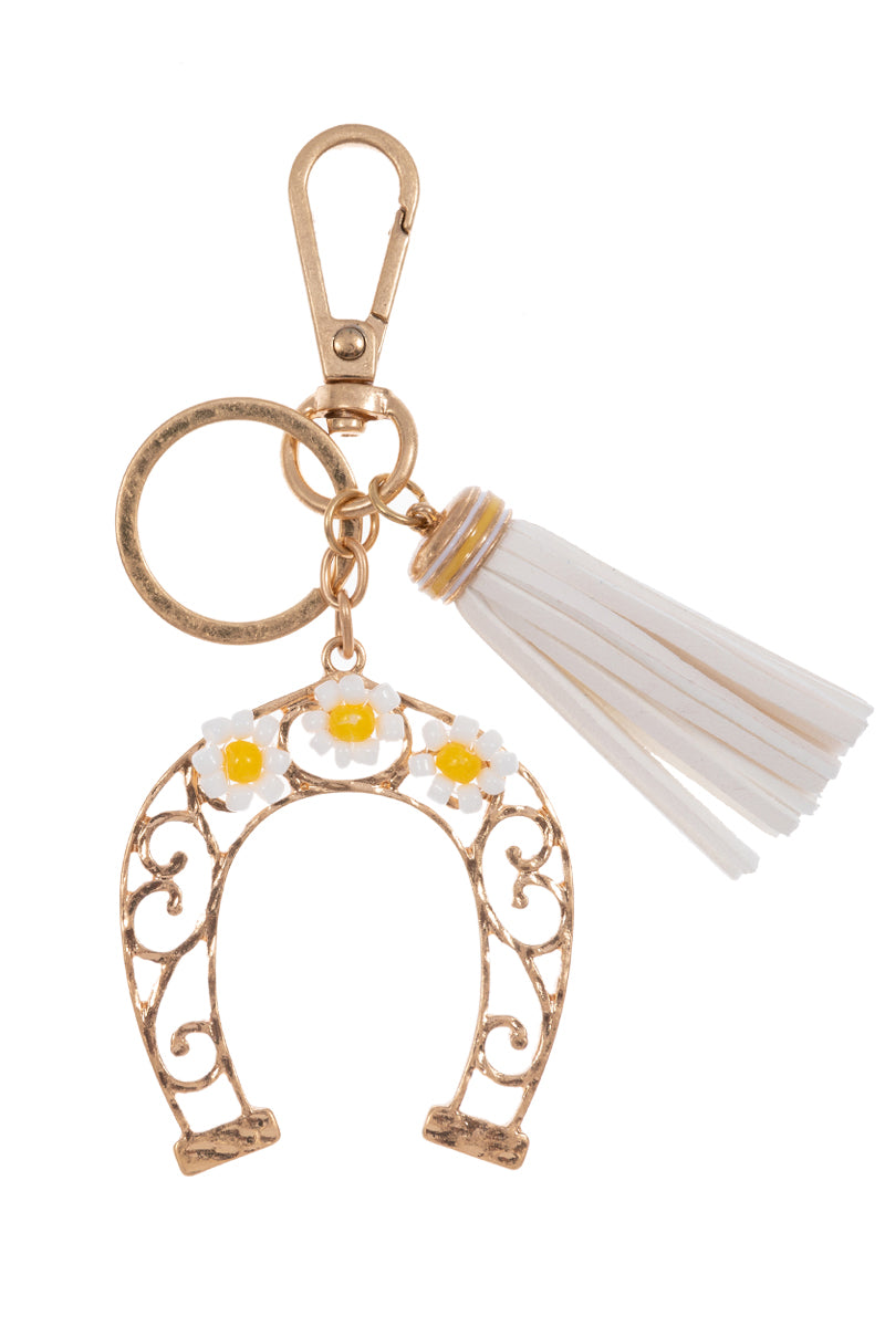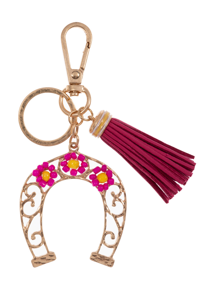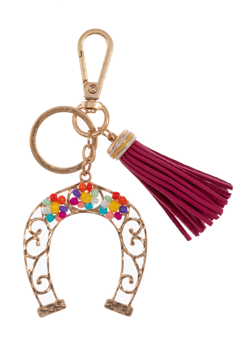 The beaded design adds a unique touch to your keychain, while the horseshoe shape symbolizes good luck and protection. With its convenient size, it easily fits in pockets or bags, making it a must-have for any keychain collection.