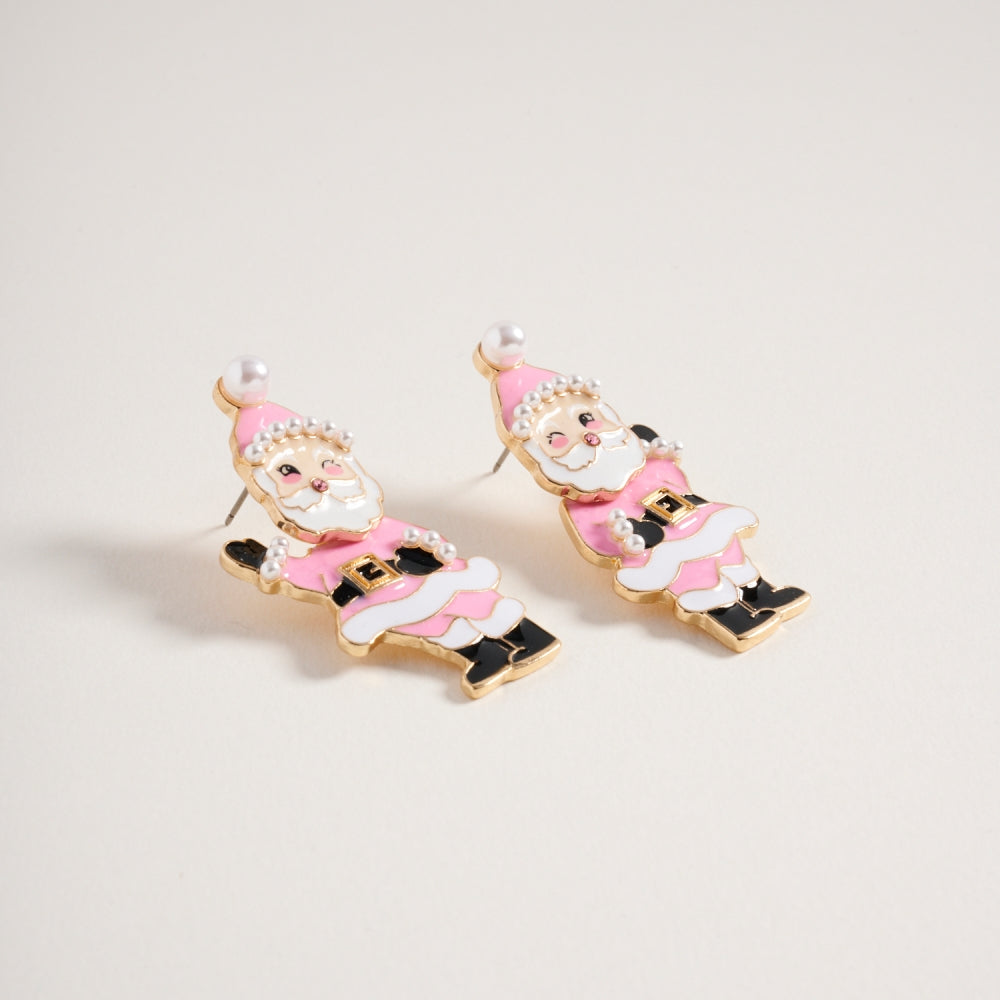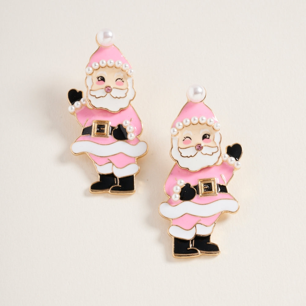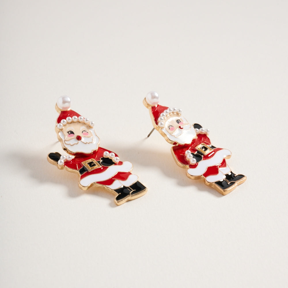 A merry wink from Santa makes these earrings a fun addition to your holiday look, complete with pearl and rhinestone embellishments.