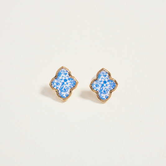 .75 In Clover Flower Pattern Print Enamel Earrings