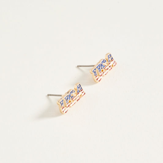 0.25 Inch USA Flag Stars Stripes Enamel Post Earrings